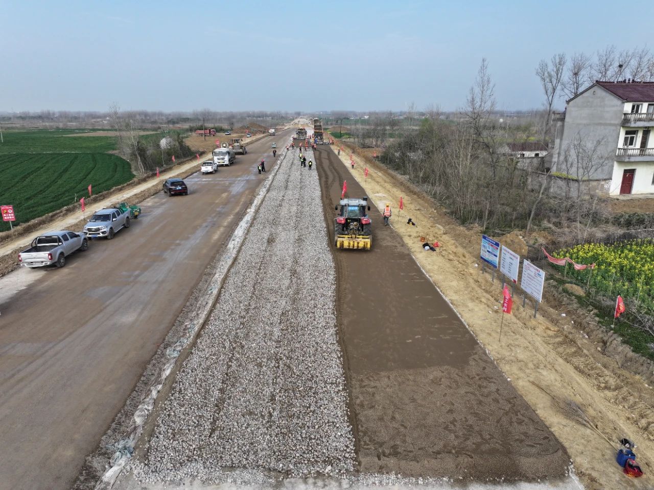 3月23日,G328定城至永康段一級(jí)公路改建工程W-05標(biāo)填充式大粒徑水泥穩(wěn)定碎石試驗(yàn)段施工圓滿完成,即將進(jìn)入瀝青層施工以及路面附屬工程施工階段。